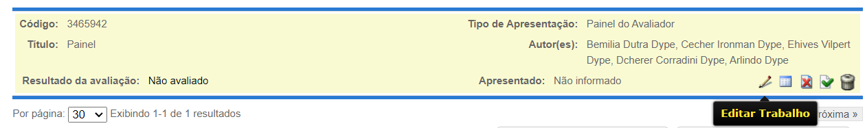 3. Clique em Editar trabalho para revisar se o trabalho foi avaliado e alocado em sessão e ST/GT.