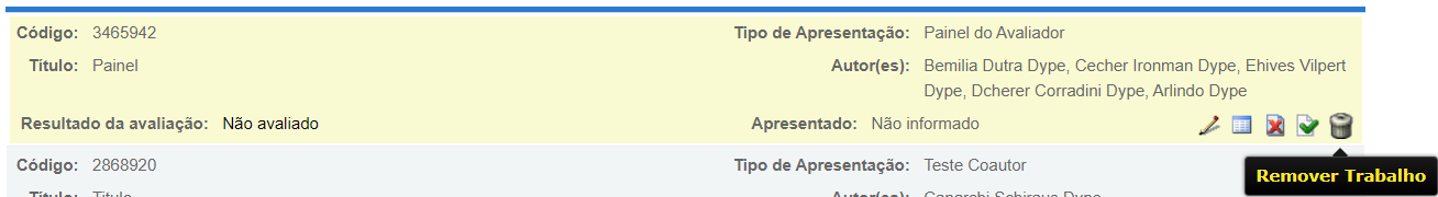 Se o trabalho duplicado foi submetido por outra pessoa e não pelo mesmo(a) autor(a) que submeteu o primeiro trabalho, você pode estar cadastrando essa essa outra pessoa como coautor(a) no trabalho correto. Para isso, siga os seguintes passos: