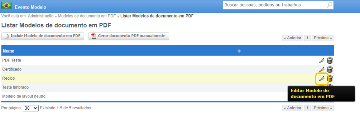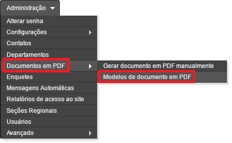 1. Acesse Administração >> Documentos em PDF >> Modelos de documento em PDF;
