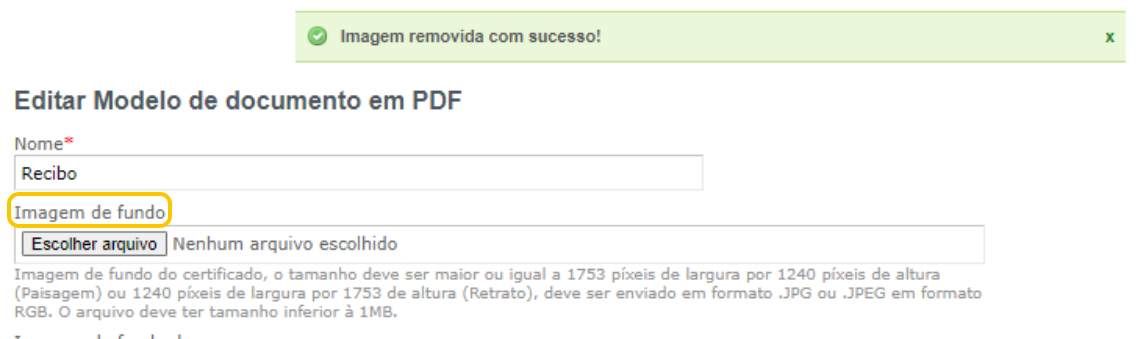 4. Após Remoção/exclusão, o campo para carregar nova imagem estará disponível, o campo está intitulado com "Imagem de fundo"