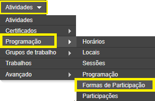 1) Siga nos menus: Atividades >> Programação >> Formas de Participação:
